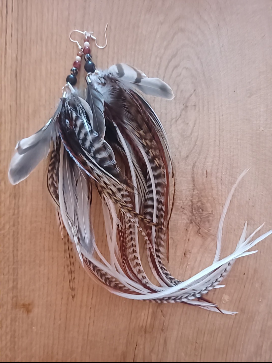 Kolczyki są z naturalnych piór : kogut amerykański, piórka dzikich ptaków zbierane