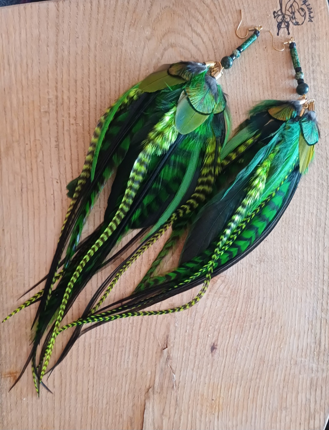 Kolczyki są z naturalnych piór : kogut amerykański, kogut europejski, kogut francuski, paw, pióra papuzie