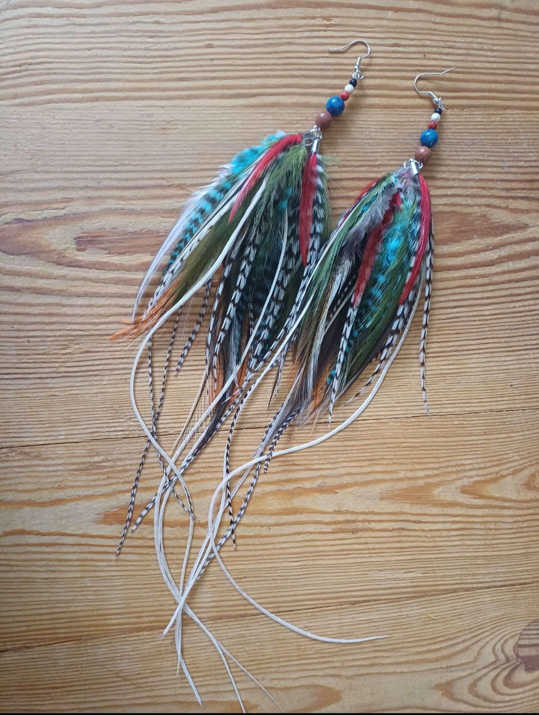 Kolczyki są z naturalnych piór : kogut amerykański, kogut europejski