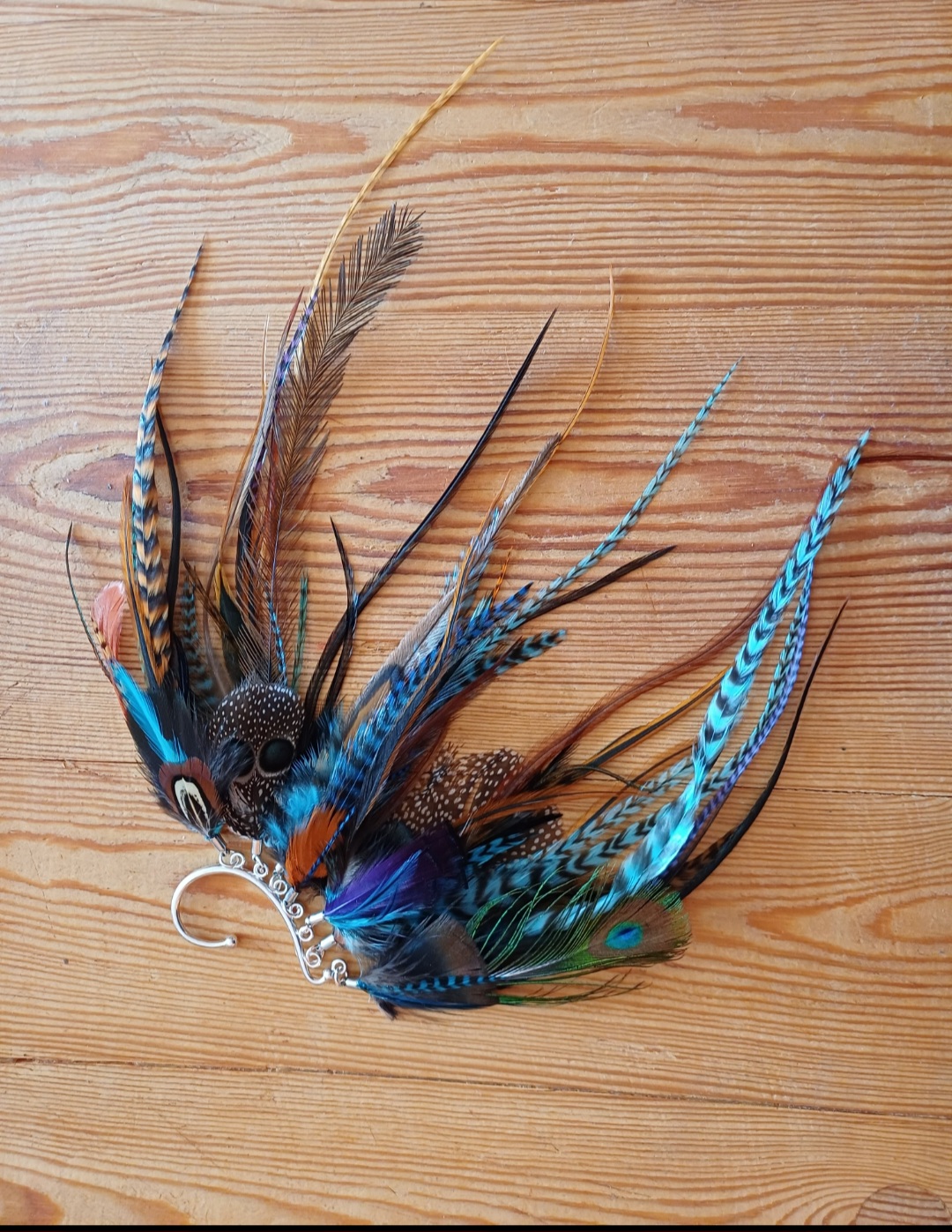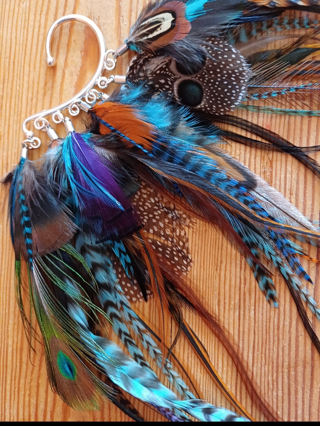 Zausznice robione są z naturalnych piór : kogut amerykański, bażant, bażant diamentowy, wieloszpon, emu, paw, kogut europejski